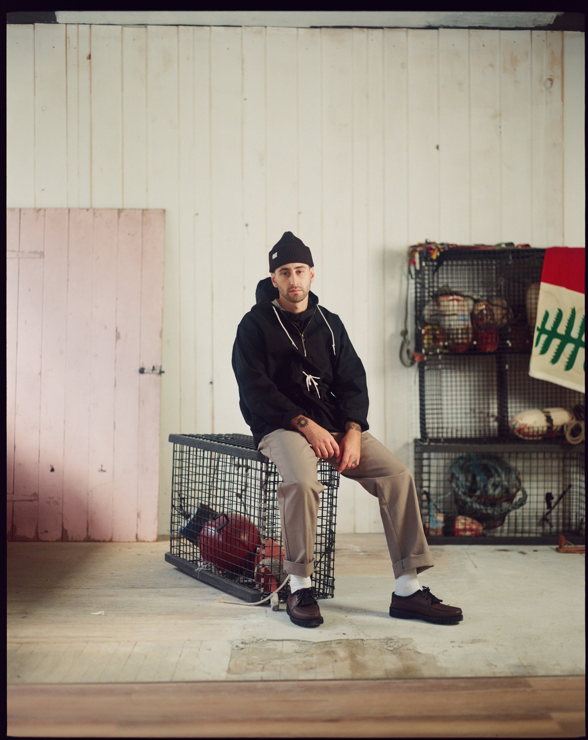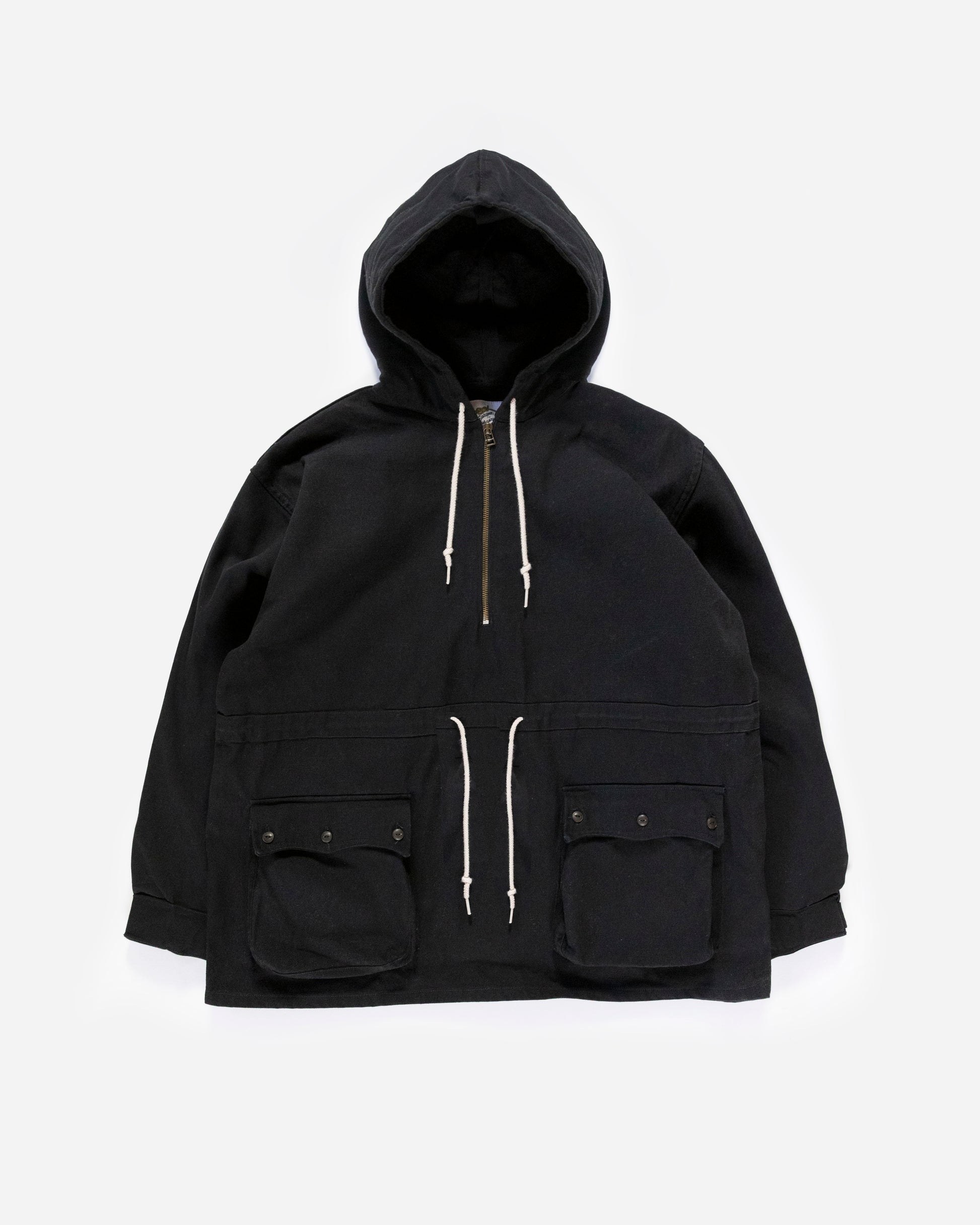 12 oz. cotton duck fabric with DWR coating. Quarter zip antique brass YKK zippers, storm guard, hood and waist drawcords, and the prettiest damn gusseted pocket flaps you ever seen. elasticated wrist strap and black cateye buttons for the win.