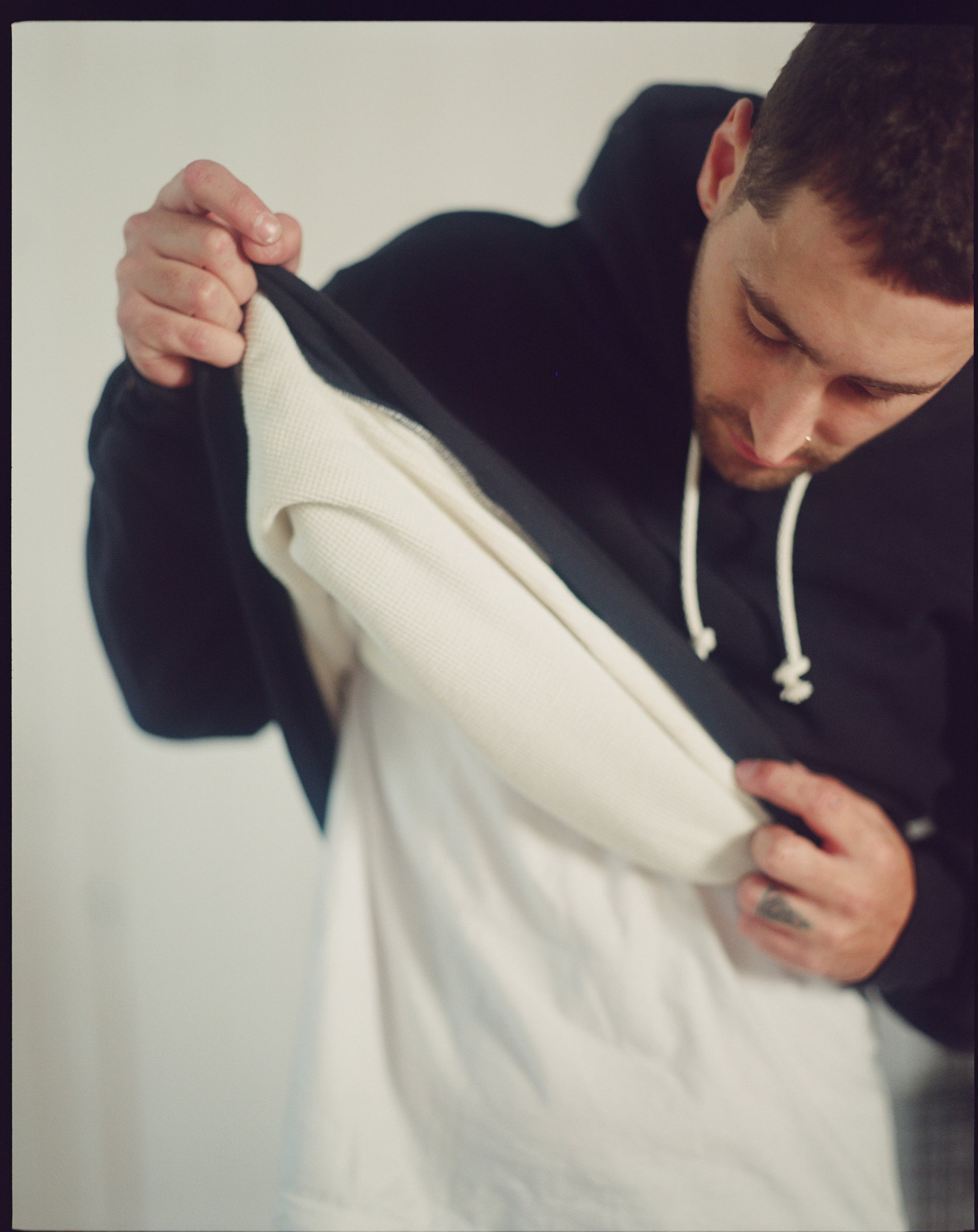Camber rules. We love Camber. We're standing on there shoulders a bit here. 100% cotton fleece, lined in undyed cotton thermal, with a generous fit. Made by the fine folks at Softgoods Detroit, exclusively for Manresa Clothing.