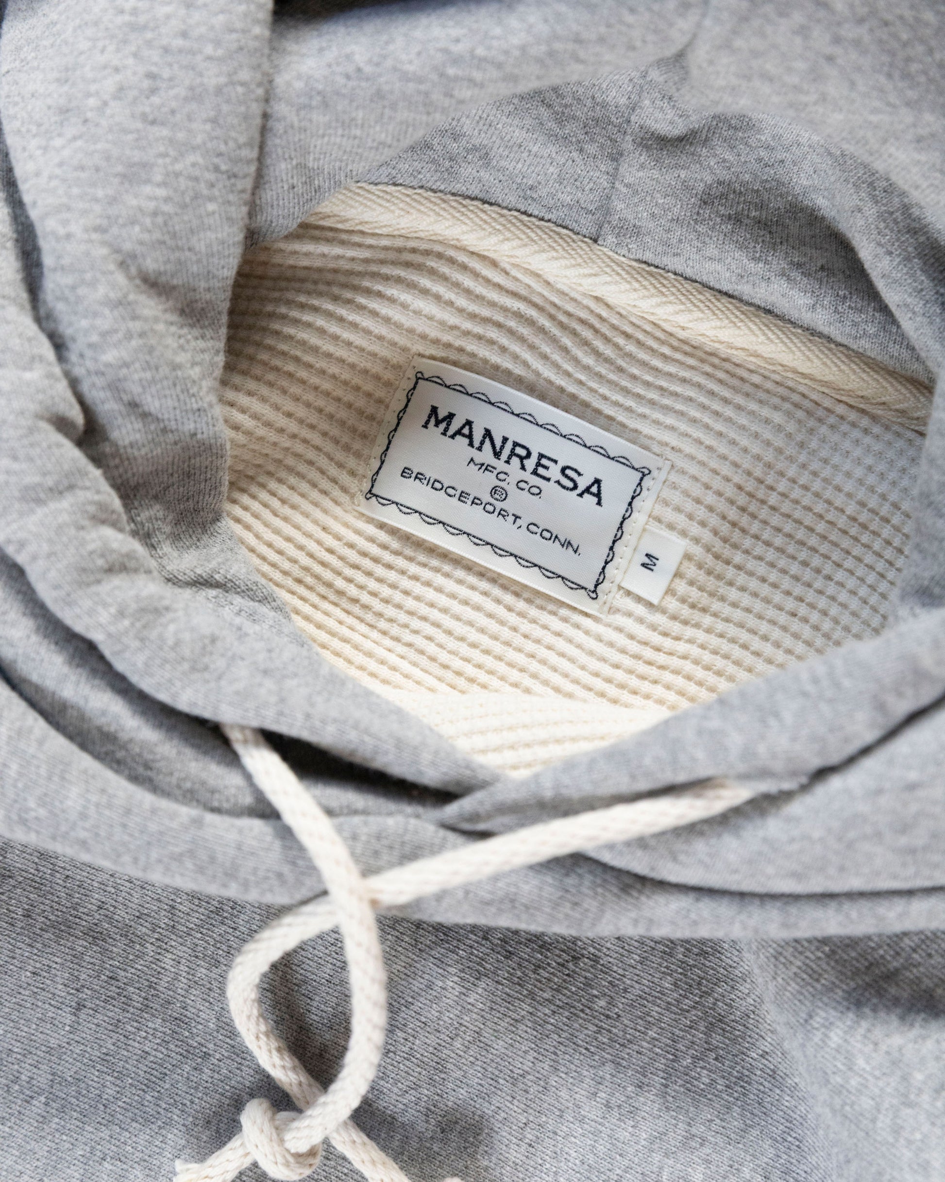Camber rules. We love Camber. We're standing on there shoulders a bit here. 100% cotton fleece, lined in undyed cotton thermal, with a generous fit. Made by the fine folks at Softgoods Detroit, exclusively for Manresa Clothing.