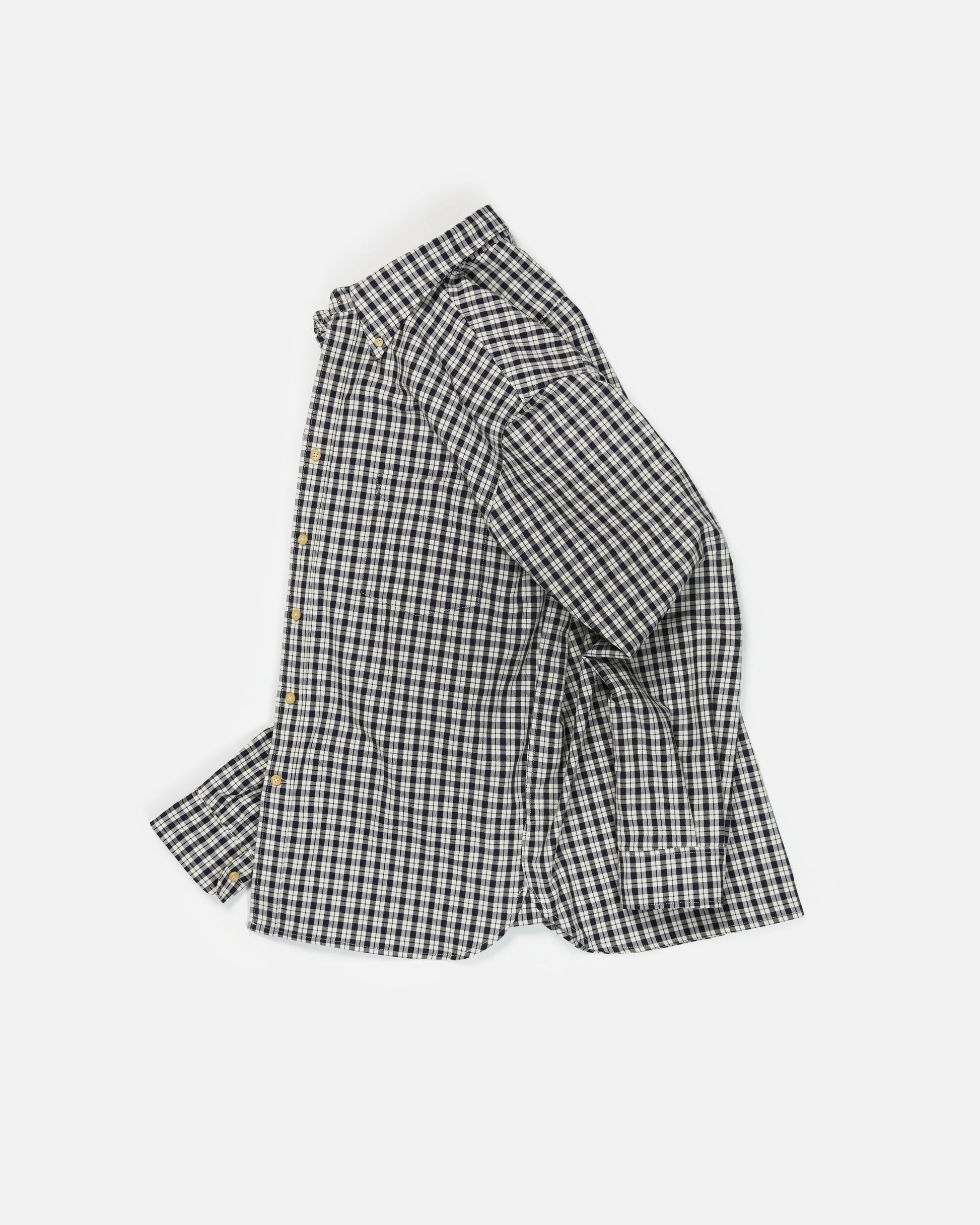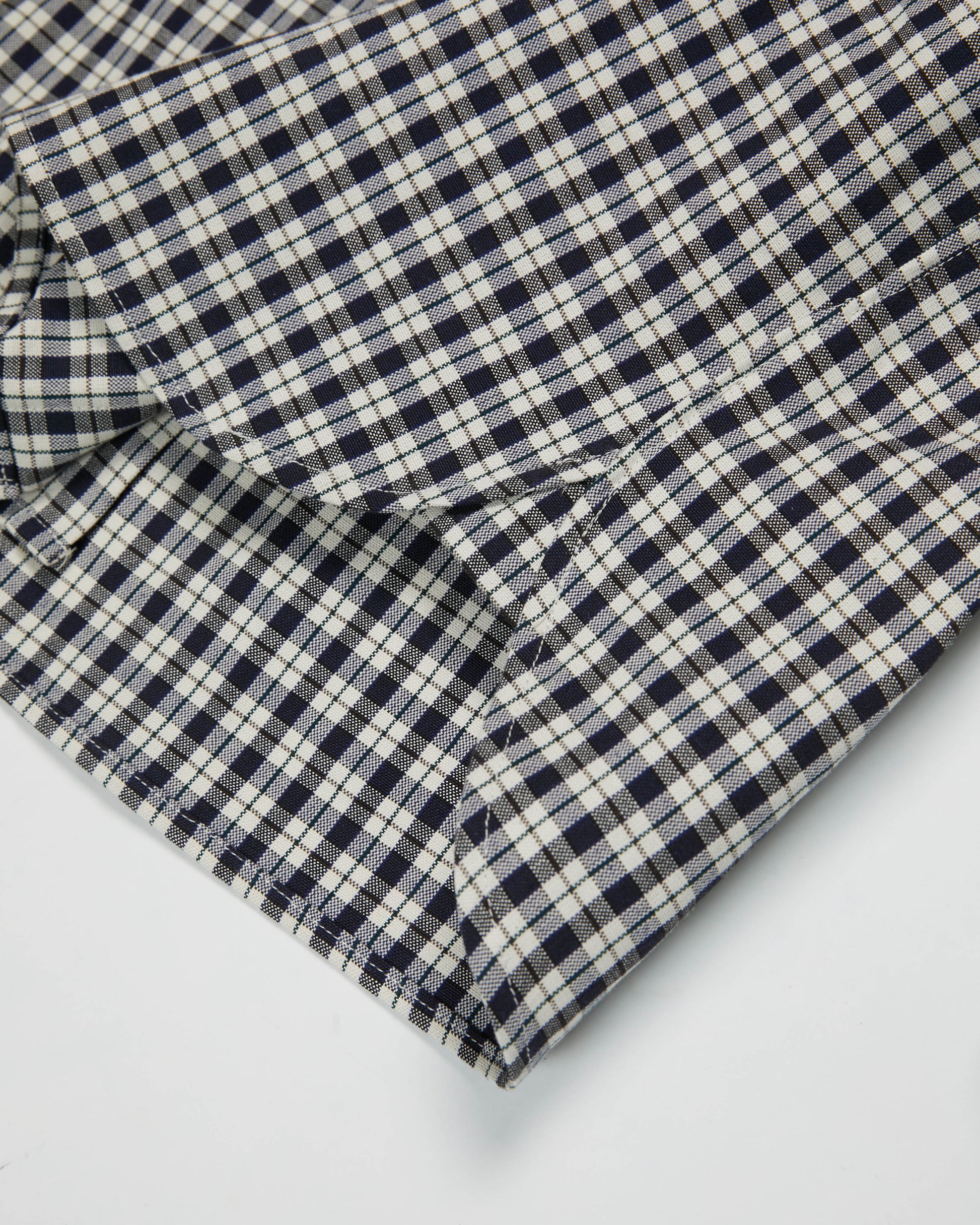 The fit is relaxed and slightly long to accommodate a tucked in look. The collar is full to allow a nice roll. Triangular pocket detail and third back collar button, as well as ascolite neck wrapped button shanks on the incredibly thick and luxurious "patina" buttons. Our favorite detail is the old world style side seam gusset. That took us a bit to perfect and we think the look of the deep rounded hem with the functional gusset at the top is as "Ivy" as the school we named this for.